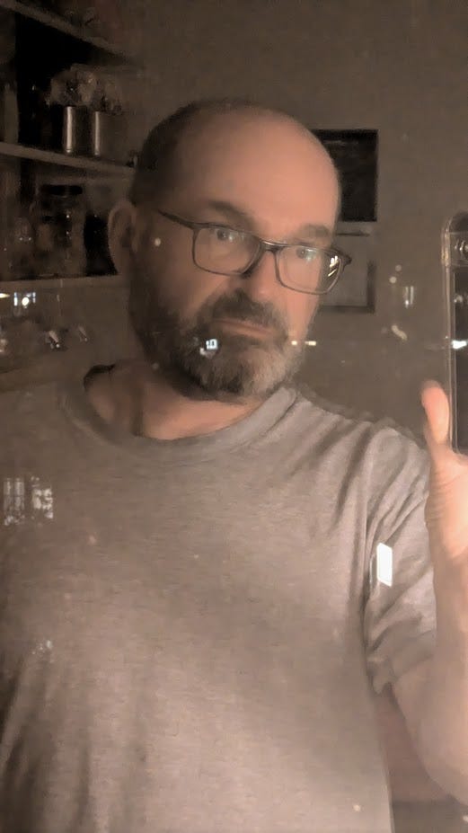 Unfiltered. This photo is a selfie. I used no filters. No image manipulation trickery. Just the kitchen light and the window. Low tech fancy. Yup.