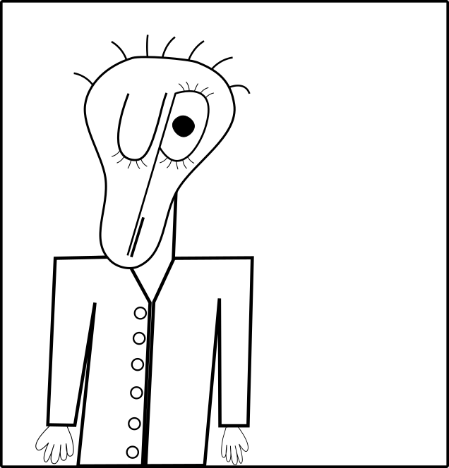 He was born when I was in high school. Probably calculus. I doodled him on paper and liked him. So I doodle transferred him with permanent ink onto my jean jacket. He lived there for many, many years and still exists on the back right panel in very faded form. Originally, he was just the head. Very simple.