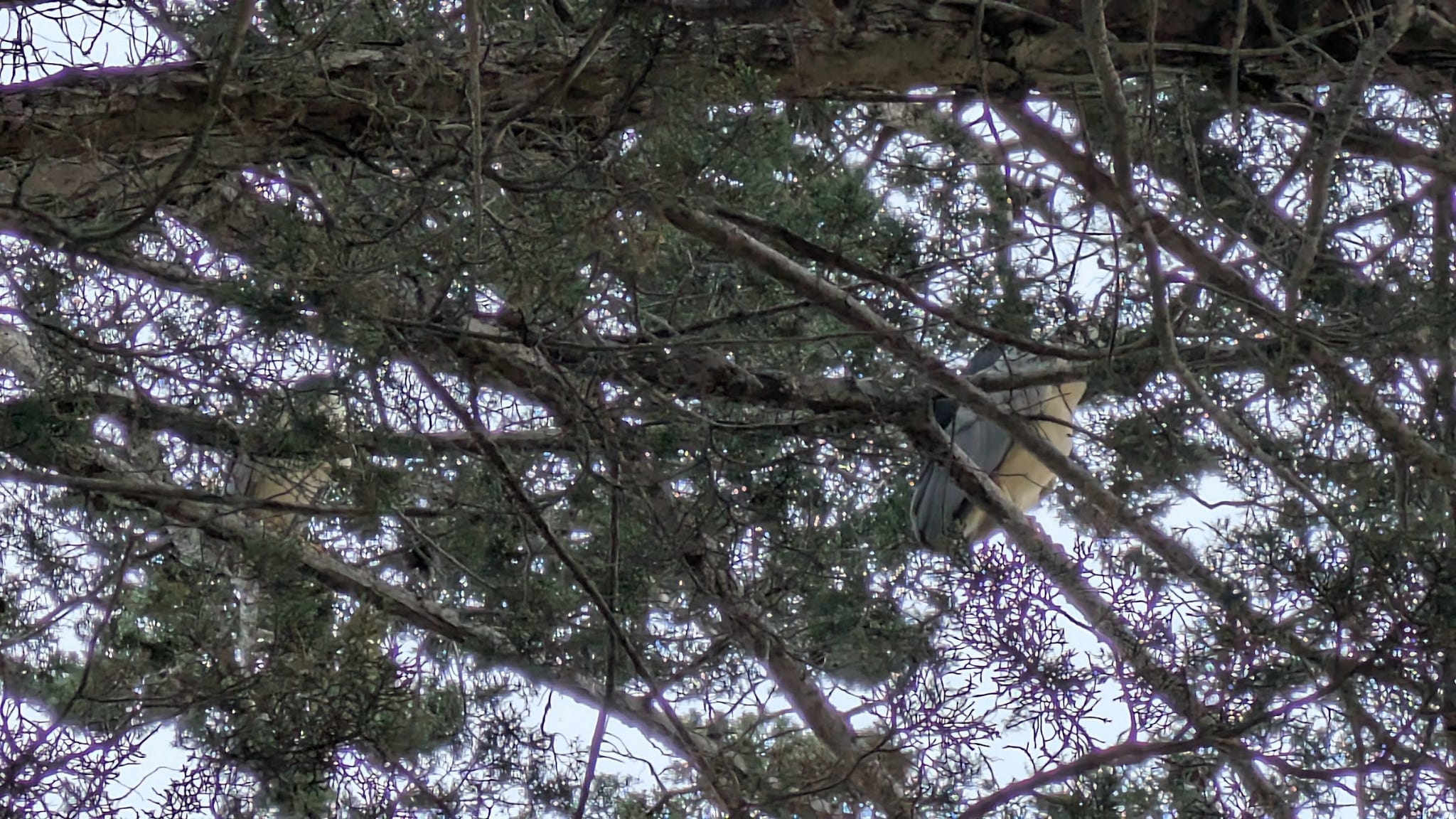 Birds in a tree… they just put up with us. . . avoid us whenever necessary. These night herons? They don’t give a rip about me. They just sit there and doze regardless of my crawling around underneath as I try to get a better view. I’m lucky they don’t poop on me.