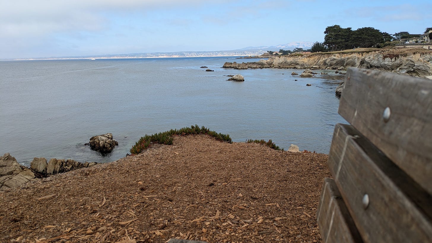 My mom’s longtime friend GM likes benches. If he sees a bench he sits in it. “They must have put it here for some reason. I mean, what do you end up looking at if you sit in it? Sit and look.” And so I do whenever I can.