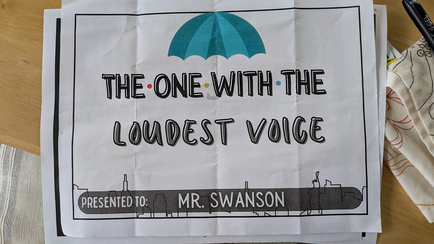 I’m not sure how I feel about being the loudest teacher. Honor? diss? hmm.