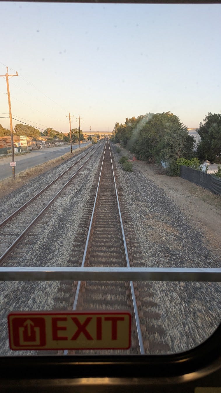Coach from Salinas to Seattle. My nephew got on near Oakland. I convince the conductor to hold the seat next to me because, “my nephew is getting on and we’ll be going all the way to Seattle together”. He was a good fellow and set us up.
