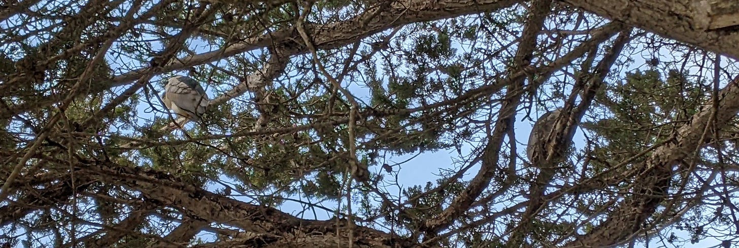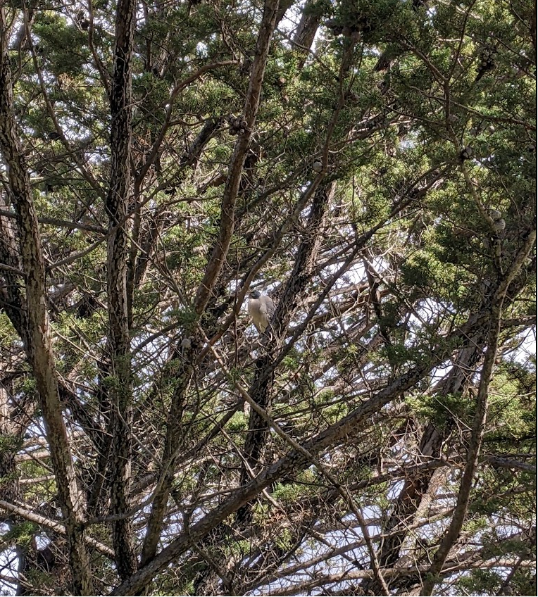 Saturday we had a wee little running group of three. After coffee we ran the rec (wreck?) trail back to PG. Along the way there is this weird Sister City park with a few trees in it. I think they are all Monterey Pine. Often there are Night Heron in the trees (I know this because of Katie). We use it as a mini rest break and look for the birds. They’re hard to see. It’s a bit like a Where’s Waldo game. Sometimes you’ll stand in one position and not see any, then shift ½ a step and see three. It’s kind of amazing. Saturday we saw 2.