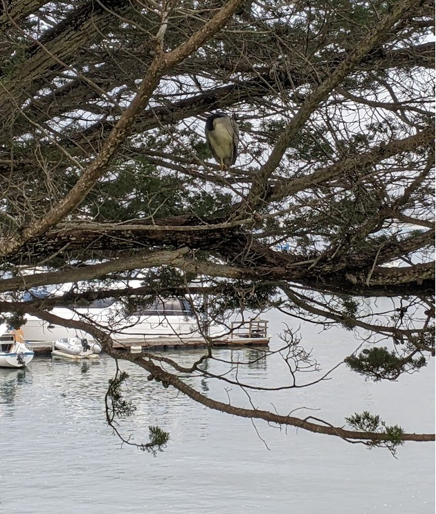 Monday there was no school due to a power outage. I took the opportunity to go on a long walk and went in to Monterey along the rec trail. I stopped at the park at around 2 pm and once again saw 2 night heron. Can you find them?
