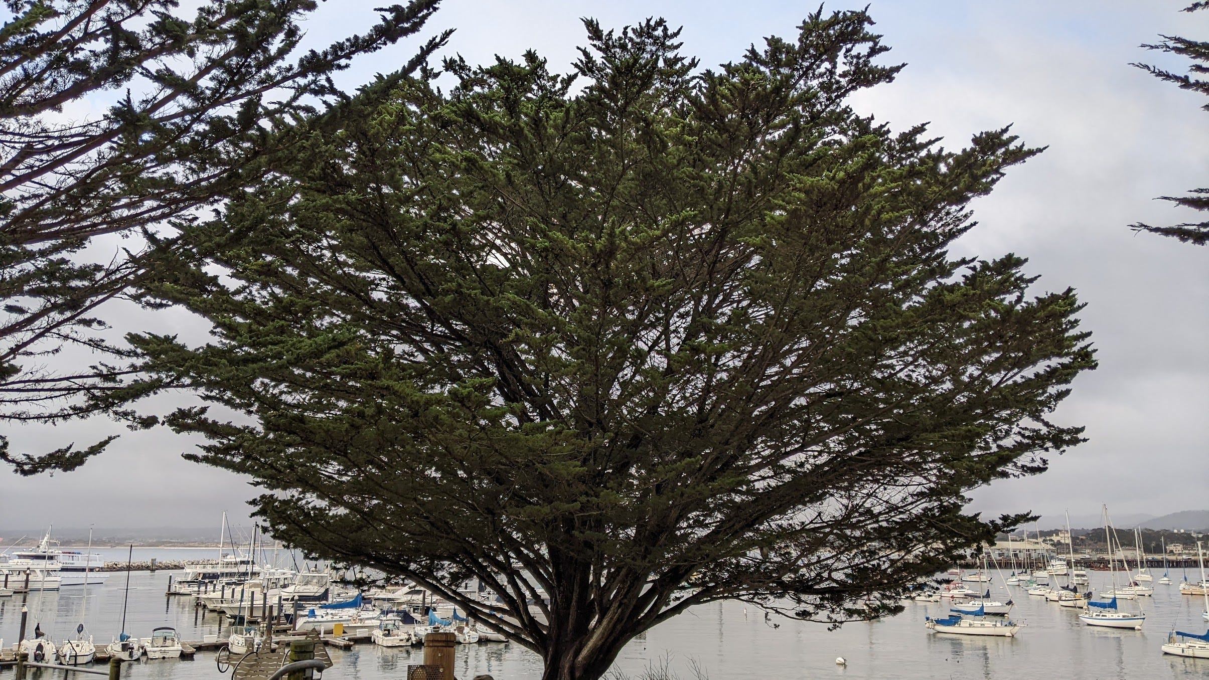 On my way home at about 5 I checked out some Monterey Pines near the harbor. There was one just hanging out a few feat above the heads of tourists in a small pine. “Watch out! She might have good aim!” Then I went to my favorite viewing tree and I think there were 5 in there. It’s hard to tell though because you can only see 2 at a time and then you move and you see 2 again but you’re not sure which 2 are which because the angle has changed and your perception is wonky and you’re looking up and you’re maybe a little dizzy. But they sure are cute. Can you find them?