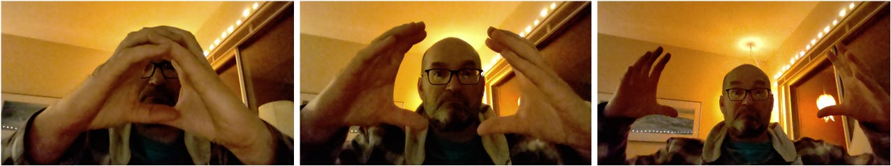 We have a nice evening talking about a variety of things. The conversations tended to circle back to detective shows and murder - but it was fun. The uncle would occasionally interject a seemingly random comment. I figure there was really some connection he had made but who knows. Anyway, at one point he comes back from a short walk (he does a lot of short walks) sits down and has a big grin on his face. I couldn’t resist. I don’t know what I said but I ribbed him a little (those of you that know me know I like to rib people). I think there was a pun involved anyway. He gave me a look and said somewhat gravely, “You are an a** hole.” I smile at him. then he holds up his hands in a small circle, “a big a** hole.” My eyebrows go up. And then he holds his hands in an even bigger circle “this big!” and wider still, “really BIG a**!” and the caregiver cuts him off, distracts him and… I am sure… he totally forgets what he just said. And I’m just thinking, “well, that was unexpected.”