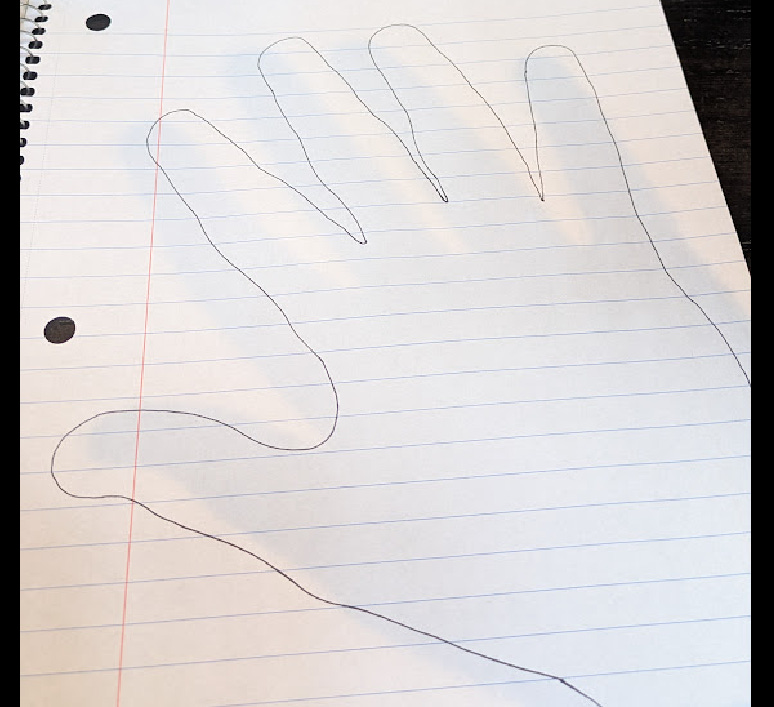 Hand traced in pen, then held aloft so the shadow shows on paper for the photo.