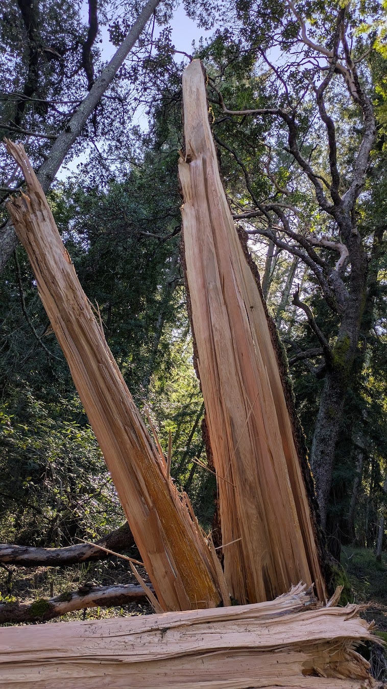 Stormy weather does mess with stuff. Sometimes big magnificent trees fall. Sometimes they crack at the base, shattering their trunks in glorious fashion. The remnants - pieces of art in and of themselves.
